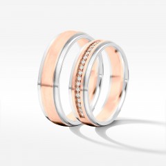 Proponujemy zjawiskowe dwukolorowe obrączki ślubne, łączące w sobie piękno białego i różowego złota. Obie odmiany kruszcu to drogocenne surowce biżuteryjne starannie wypalone w złotniczym ogniu i opracowane. Wzornictwo nawiązuje zarówno do klasyki, jak i do najnowszych trendów w projektowaniu ozdób.