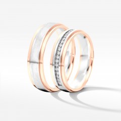 Proponujemy zjawiskowe dwukolorowe obrączki ślubne, łączące w sobie piękno białego i różowego złota. Obie odmiany kruszcu to drogocenne surowce biżuteryjne starannie wypalone w złotniczym ogniu i opracowane. Wzornictwo nawiązuje zarówno do klasyki, jak i do najnowszych trendów w projektowaniu ozdób.
