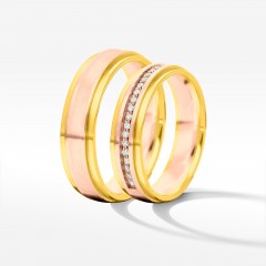 Prezentujemy dwukolorowe obrączki ślubne z żółtego i różowego złota. Wytworzona ze starannie wyselekcjonowanego kruszcu wysokiej jakości biżuteria będzie pięknie prezentować się na co dzień. Taki zestaw krążków wyróżni Was i podkreśli wyjątkowość Waszego uczucia. Powiedz „tak” w pięknym stylu!