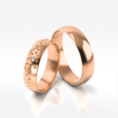 Oferujemy luksusowe obrączki ślubne z nietypowej odmiany złota. Wykonany z różowego kruszcu zestaw to wspaniały przykład na biżuteryjny projekt łączący w sobie klasykę i nowoczesność. Dopracowana do perfekcji biżuteria to nasza specjalność. Tworzymy krążki eleganckie i wieczne, jak Wasza miłość.