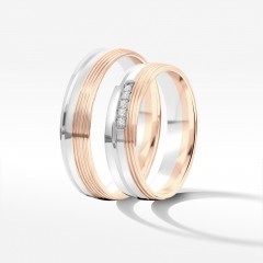 Te niebanalne dwukolorowe obrączki ślubne powstały z połączenia białego i różowego złota. Dwa kruszce stały się jednością, zachowując swój niepowtarzalny charakter i tworząc dzięki temu całkowicie nową jakość. Zupełnie jak Wy. Jeśli ta metafora miłości trafia do Twojego serca może to właśnie zestaw krążków dla Was?