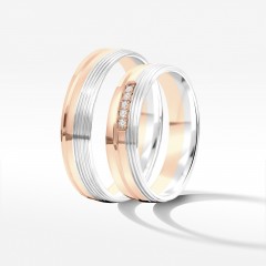 Te niebanalne dwukolorowe obrączki ślubne powstały z połączenia białego i różowego złota. Dwa kruszce stały się jednością, zachowując swój niepowtarzalny charakter i tworząc dzięki temu całkowicie nową jakość. Zupełnie jak Wy. Jeśli ta metafora miłości trafia do Twojego serca może to właśnie zestaw krążków dla Was?