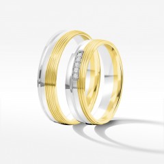 Prezentujemy niebanalne dwukolorowe obrączki z białego i żółtego złota, które połączą Was na zawsze. Te efektowne ślubne krążki to piękna metafora kobiecej i męskiej energii połączonej w jedno. Stworzone przez znawców projektowania i pasjonatów piękna, których zainspirowała nowoczesność.