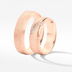 Oferujemy luksusowe obrączki ślubne z nietypowej odmiany złota. Wykonany z różowego kruszcu zestaw to wspaniały przykład na biżuteryjny projekt łączący w sobie klasykę i nowoczesność. Dopracowana do perfekcji biżuteria to nasza specjalność. Tworzymy krążki eleganckie i wieczne, jak Wasza miłość.