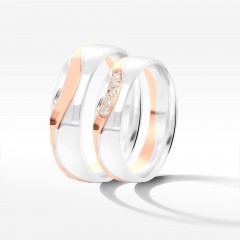 To metafora miłości w biżuteryjnej formie. Nietuzinkowe obrączki ślubne łączące w sobie piękno białego i różowego złota. Dwukolorowe krążki powstały z kruszców najwyższej jakości. W starannym procesie obróbki połączone zostały na zawsze, aby następnie tak samo złączyć Was na wieczność. To biżuteria z charakterem. Wytrzymała i piękna.
