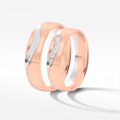 Oferujemy eleganckie dwukolorowe obrączki ślubne wykonane z białego i różowego złota najwyższej klasy. Zjawiskowa biżuteria z gracją łączy dwa rodzaje kruszcu. To przykład na wzornictwo z charakterem. Szczególnie ciekawa propozycja dla zwolenników pięknych detali, które wyłamują się z powszechnie przyjętego schematu.