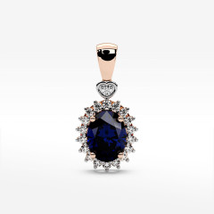Pierścionek z różowego złota z szafirem i diamentami