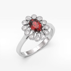 Złote kolczyki z rubinem i diamentami