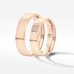 Oferujemy luksusowe obrączki ślubne z nietypowej odmiany złota. Wykonany z różowego kruszcu zestaw to wspaniały przykład na biżuteryjny projekt łączący w sobie klasykę i nowoczesność. Dopracowana do perfekcji biżuteria to nasza specjalność. Tworzymy krążki eleganckie i wieczne, jak Wasza miłość.