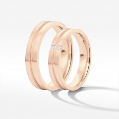 Oferujemy luksusowe obrączki ślubne z nietypowej odmiany złota. Wykonany z różowego kruszcu zestaw to wspaniały przykład na biżuteryjny projekt łączący w sobie klasykę i nowoczesność. Dopracowana do perfekcji biżuteria to nasza specjalność. Tworzymy krążki eleganckie i wieczne, jak Wasza miłość.