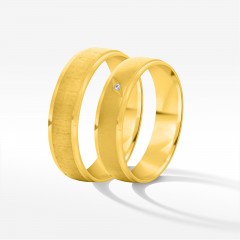 Oferujemy zachwycające obrączki z żółtego złota, które połączą Was na zawsze. W tym komplecie energia kobieca i męska przeplatają się w idealnej harmonii. Zestaw obrączek symbolizuje szczęśliwy i dobrze dobrany związek, w którym króluje równowaga. Żółte złoto swoim ciepłym blaskiem rozjaśni Wasze wspólne dni.