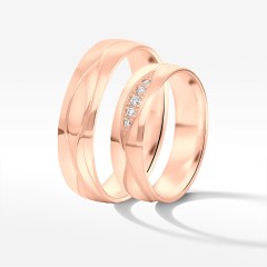 Oferujemy stylowe obrączki z różowego złota. Te niezwykle eleganckie krążki ślubne to wybór dla pary, która pragnie przypieczętować swoją miłość pięknym i nietuzinkowym detalem. Wzór inspirowany jest najlepszym światowym designem biżuteryjnym. Wykonanie to sztuka złotnicza w najlepszym wydaniu.