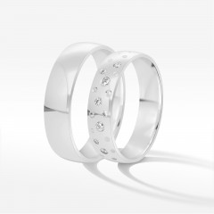 Oferujemy zachwycające obrączki z białego złota, które połączą Was na zawsze. W tym komplecie energia kobieca i męska przeplatają się w idealnej harmonii. Zestaw obrączek symbolizuje szczęśliwy i dobrze dobrany związek, w którym króluje równowaga. Białe złoto swoim blaskiem rozjaśni Wasze wspólne dni.