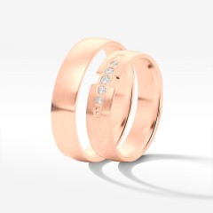 Prezentujemy obrączki ślubne z różowego złota, którego kolor nawiązuje do barwy miłości. Ten nietuzinkowy zestaw pozwoli Wam się wyróżnić i pokazać światu jak wyjątkową parę tworzycie. W tym komplecie energia kobieca i męska przeplatają się w idealnej harmonii. Zestaw obrączek symbolizuje dobrze dobrany związek, w którym króluje równowaga.
