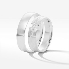 Oferujemy zachwycające obrączki z białego złota, które połączą Was na zawsze. W tym komplecie energia kobieca i męska przeplatają się w idealnej harmonii. Zestaw obrączek symbolizuje szczęśliwy i dobrze dobrany związek, w którym króluje równowaga. Białe złoto swoim blaskiem rozjaśni Wasze wspólne dni.