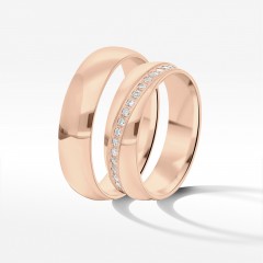 Oferujemy stylowe obrączki z różowego złota. Te niezwykle eleganckie krążki ślubne to wybór dla pary, która pragnie przypieczętować swoją miłość pięknym i nietuzinkowym detalem. Wzór inspirowany jest najlepszym światowym designem biżuteryjnym. Wykonanie to sztuka złotnicza w najlepszym wydaniu.