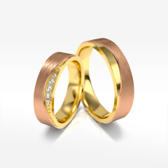 Proponujemy luksusowe dwukolorowe obrączki. Z precyzyjnie opracowanego żółtego i różowego złota powstała harmonijna kompozycja i piękna metafora związku. Krążki ślubne z gracją łączą w sobie charakter dwóch drogocennych surowców jubilerskich. W efekcie powstała zjawiskowa i trwała biżuteria, wyjątkowa jak Wy.