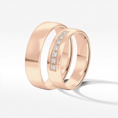 Prezentujemy obrączki ślubne z różowego złota, którego kolor nawiązuje do barwy miłości. Ten nietuzinkowy zestaw pozwoli Wam się wyróżnić i pokazać światu jak wyjątkową parę tworzycie. W tym komplecie energia kobieca i męska przeplatają się w idealnej harmonii. Zestaw obrączek symbolizuje dobrze dobrany związek, w którym króluje równowaga.