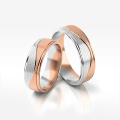 Te niebanalne dwukolorowe obrączki ślubne powstały z połączenia białego i różowego złota. Dwa kruszce stały się jednością, zachowując swój niepowtarzalny charakter i tworząc dzięki temu całkowicie nową jakość. Zupełnie jak Wy. Jeśli ta metafora miłości trafia do Twojego serca może to właśnie zestaw krążków dla Was?