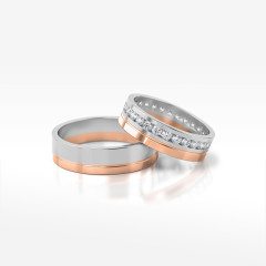 Proponujemy zjawiskowe dwukolorowe obrączki ślubne, łączące w sobie piękno białego i różowego złota. Obie odmiany kruszcu to drogocenne surowce biżuteryjne starannie wypalone w złotniczym ogniu i opracowane. Wzornictwo nawiązuje zarówno do klasyki, jak i do najnowszych trendów w projektowaniu ozdób.