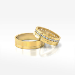 Prezentowany tu wariant złotych krążków to idealny wybór na ceremonię marzeń. Jeśli pragniesz, aby połączyła Was biżuteryjna doskonałość, to zdecydowanie model dla Ciebie. Harmonijna kompozycja wariantu dla Niej i dla Niego jest metaforą dwóch części, tworzących perfekcyjną całość. Żółte złoto to tradycja, która trwa mimo zmieniających się trendów.