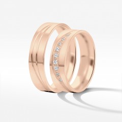 Prezentujemy obrączki ślubne z różowego złota, którego kolor nawiązuje do barwy miłości. Ten nietuzinkowy zestaw pozwoli Wam się wyróżnić i pokazać światu jak wyjątkową parę tworzycie. W tym komplecie energia kobieca i męska przeplatają się w idealnej harmonii. Zestaw obrączek symbolizuje dobrze dobrany związek, w którym króluje równowaga.