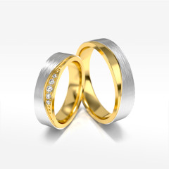 Prezentujemy dwukolorowe obrączki ślubne z białego i żółtego złota, które podkreślą wyjątkowość Waszej miłości. W efektownej kompozycji wyraża się dualność energii tworzących harmonijny związek. Z jednej strony to wzornictwo, promieniujące siłą i ciepłym blaskiem, a z drugiej delikatnością i stonowaną elegancją.