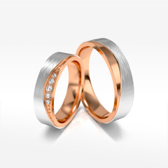 To metafora miłości w biżuteryjnej formie. Nietuzinkowe obrączki ślubne łączące w sobie piękno białego i różowego złota. Dwukolorowe krążki powstały z kruszców najwyższej jakości. W starannym procesie obróbki połączone zostały na zawsze, aby następnie tak samo złączyć Was na wieczność. To biżuteria z charakterem. Wytrzymała i piękna.
