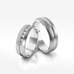 Prezentowany tu wariant złotych krążków to idealny wybór na ceremonię marzeń. Jeśli pragniesz, aby połączyła Was biżuteryjna doskonałość, to zdecydowanie model dla Ciebie. Harmonijna kompozycja wariantu dla Niej i dla Niego jest metaforą dwóch części, tworzących perfekcyjną całość. Białe złoto to piękno, która trwa mimo zmieniających się trendów.