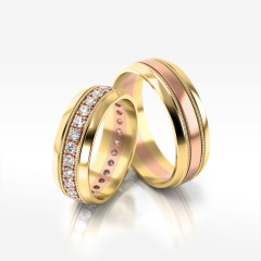 Te zjawiskowe dwukolorowe obrączki ślubne łączą w sobie tradycyjny charakter żółtego i nietuzinkowy różowego złota. Połączone w precyzyjnym procesie obróbki stanowią jedność, która idealnie sprawdzi się jako symbol Waszej nowej drogi życia. Biżuteria wykonana z wysokiej jakości kruszców sprosta wyzwaniom codzienności.