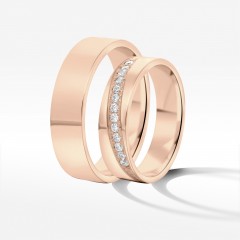 Prezentujemy obrączki ślubne z różowego złota, którego kolor nawiązuje do barwy miłości. Ten nietuzinkowy zestaw pozwoli Wam się wyróżnić i pokazać światu jak wyjątkową parę tworzycie. W tym komplecie energia kobieca i męska przeplatają się w idealnej harmonii. Zestaw obrączek symbolizuje dobrze dobrany związek, w którym króluje równowaga.