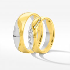 Prezentujemy piękno w czystej postaci. Dwukolorowe obrączki ślubne, które łączą w sobie tradycję i nowoczesność. Z białego i żółtego złota powstała biżuteria, w której łatwo się zakochać. Intrygująca, jednak dystyngowana oraz niezwykle elegancka. Połączenie szlachetnych kruszców to metafora spełnionej i silnej miłości.