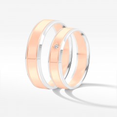 Te niebanalne dwukolorowe obrączki ślubne powstały z połączenia białego i różowego złota. Dwa kruszce stały się jednością, zachowując swój niepowtarzalny charakter i tworząc dzięki temu całkowicie nową jakość. Zupełnie jak Wy. Jeśli ta metafora miłości trafia do Twojego serca może to właśnie zestaw krążków dla Was?