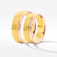 Te zjawiskowe dwukolorowe obrączki ślubne łączą w sobie tradycyjny charakter żółtego i nietuzinkowy różowego złota. Połączone w precyzyjnym procesie obróbki stanowią jedność, która idealnie sprawdzi się jako symbol Waszej nowej drogi życia. Biżuteria wykonana z wysokiej jakości kruszców sprosta wyzwaniom codzienności.