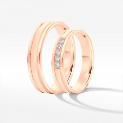 Oferujemy stylowe obrączki z różowego złota. Te niezwykle eleganckie krążki ślubne to wybór dla pary, która pragnie przypieczętować swoją miłość pięknym i nietuzinkowym detalem. Wzór inspirowany jest najlepszym światowym designem biżuteryjnym. Wykonanie to sztuka złotnicza w najlepszym wydaniu.