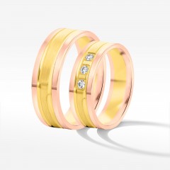 Te wyjątkowe dwukolorowe obrączki powstały z żółtego i różowego złota najwyższej jakości. Inspirowane najnowszymi trendami biżuteryjnego wzornictwa ślubne krążki, będą pięknym akcentem ceremonii oraz detalem, który w codzienności przywoła dobre wspomnienia. To trwałe symbole miłości wykonane z największą precyzją.
