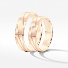 Oferujemy luksusowe obrączki ślubne z nietypowej odmiany złota. Wykonany z różowego kruszcu zestaw to wspaniały przykład na biżuteryjny projekt łączący w sobie klasykę i nowoczesność. Dopracowana do perfekcji biżuteria to nasza specjalność. Tworzymy krążki eleganckie i wieczne, jak Wasza miłość.