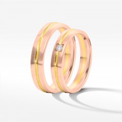 Proponujemy luksusowe dwukolorowe obrączki. Z precyzyjnie opracowanego żółtego i różowego złota powstała harmonijna kompozycja i piękna metafora związku. Krążki ślubne z gracją łączą w sobie charakter dwóch drogocennych surowców jubilerskich. W efekcie powstała zjawiskowa i trwała biżuteria, wyjątkowa jak Wy.