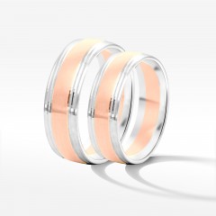 Prezentujemy efektowne obrączki ślubne wykonane z różowego i białego złota. Ta nietypowa propozycja z pewnością przypadnie do gustu parom, które lubią otaczać się tym, co wyjątkowe. Takie właśnie jest wzornictwo tej biżuterii. Dwukolorowe krążki łączą klasykę z nowoczesnością i robią to w pięknym stylu.