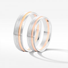 Prezentujemy efektowne obrączki ślubne wykonane z różowego i białego złota. Ta nietypowa propozycja z pewnością przypadnie do gustu parom, które lubią otaczać się tym, co wyjątkowe. Takie właśnie jest wzornictwo tej biżuterii. Dwukolorowe krążki łączą klasykę z nowoczesnością i robią to w pięknym stylu.