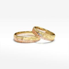 Te zjawiskowe dwukolorowe obrączki ślubne łączą w sobie tradycyjny charakter żółtego i nietuzinkowy różowego złota. Połączone w precyzyjnym procesie obróbki stanowią jedność, która idealnie sprawdzi się jako symbol Waszej nowej drogi życia. Biżuteria wykonana z wysokiej jakości kruszców sprosta wyzwaniom codzienności.