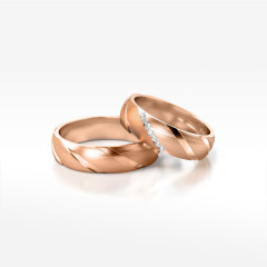 Oferujemy luksusowe obrączki ślubne z nietypowej odmiany złota. Wykonany z różowego kruszcu zestaw to wspaniały przykład na biżuteryjny projekt łączący w sobie klasykę i nowoczesność. Dopracowana do perfekcji biżuteria to nasza specjalność. Tworzymy krążki eleganckie i wieczne, jak Wasza miłość.
