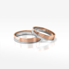 To metafora miłości w biżuteryjnej formie. Nietuzinkowe obrączki ślubne łączące w sobie piękno białego i różowego złota. Dwukolorowe krążki powstały z kruszców najwyższej jakości. W starannym procesie obróbki połączone zostały na zawsze, aby następnie tak samo złączyć Was na wieczność. To biżuteria z charakterem. Wytrzymała i piękna.