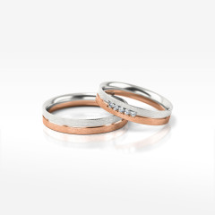 Te niebanalne dwukolorowe obrączki ślubne powstały z połączenia białego i różowego złota. Dwa kruszce stały się jednością, zachowując swój niepowtarzalny charakter i tworząc dzięki temu całkowicie nową jakość. Zupełnie jak Wy. Jeśli ta metafora miłości trafia do Twojego serca może to właśnie zestaw krążków dla Was?