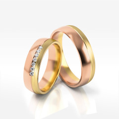 Proponujemy luksusowe dwukolorowe obrączki. Z precyzyjnie opracowanego żółtego i różowego złota powstała harmonijna kompozycja i piękna metafora związku. Krążki ślubne z gracją łączą w sobie charakter dwóch drogocennych surowców jubilerskich. W efekcie powstała zjawiskowa i trwała biżuteria, wyjątkowa jak Wy.
