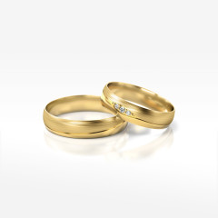 Prezentujemy wytworne obrączki ślubne, które idealne łączą to, co klasyczne, z tym, co awangardowe. Mariaż matowego złota z jego lśniącą powierzchnią prezentuje się zachwycająco. Szerokie złote krążki są jednocześnie dekoracyjne i stonowane. Obrączka dla Niego stworzona została z myślą o mężczyźnie, który wie, czego chce i ceni sobie wszystko, co eleganckie i nietypowe. Biżuteria ślubna dla Niej koresponduje wzorniczo z męskim wariantem krążka, jednak wzbogacona została niezwykle kobiecym akcentem – dekoracją z lśniących diamentów (lub cyrkonii – swój wariant wybierzesz w menu obok zdjęcia produktu). Trzy lśniące kamienie zamknięte zostały kompozycyjnie w miękkim kształcie, inspirowanym naturą. To propozycja dla Pań, które kochają nieoczywiste i subtelne piękno. Krążek zaprezentuje się zachwycająco w ducie z pierścionkiem zaręczynowym.