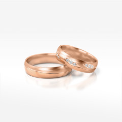 Prezentujemy obrączki ślubne z różowego złota, którego kolor nawiązuje do barwy miłości. Ten nietuzinkowy zestaw pozwoli Wam się wyróżnić i pokazać światu jak wyjątkową parę tworzycie. W tym komplecie energia kobieca i męska przeplatają się w idealnej harmonii. Zestaw obrączek symbolizuje dobrze dobrany związek, w którym króluje równowaga.