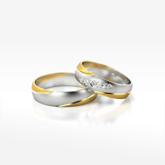 Oferujemy oryginalne obrączki z białego i żółtego złota. Dwukolorowe krążki ślubne łączą w sobie różne odmiany kruszcu, z których każda symbolizuje inną energię – męską lub żeńską. Taniec tych dwóch jakości uchwycony został we wzorze o ponadczasowym pięknie. Propozycja dla idealnie dobranych par.